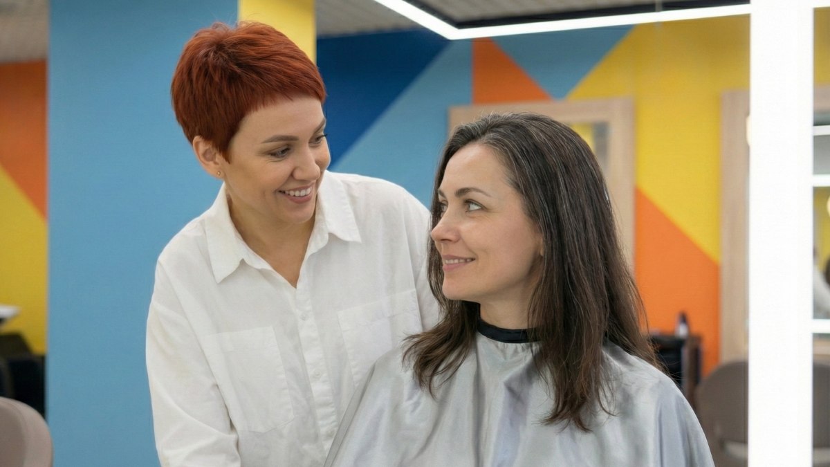 Lorsque la cliente vient au salon de coiffure et s'assoit dans le fauteuil, il y a une sorte d'entrevue. C'est une séance de connaissance mutuelle pour les deux parties. La cliente apprend un peu sur la personnalité du coiffeur et peut regarder un portfolio du travail du coiffeur. Pendant ce temps, le coiffeur pose généralement des questions au cliente sur son style de vie, sa routine et ce qu'elle recherche pour ses cheveux.