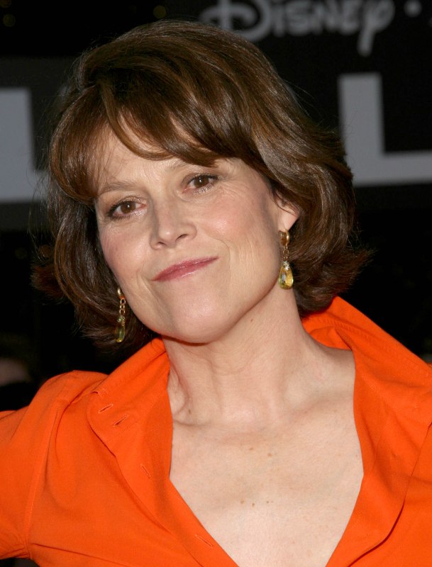 Sur la première photo datant d'avril 2003, nous voyons Sigourney avec une coiffure courte, bouclée et en dégradé. La coiffure est belle, mais elle semble attirer l'attention sur les mauvais endroits. Son front haut, son nez pointu et sa mâchoire forte attirent l’attention.