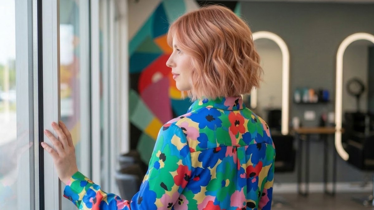 Peu de couleurs de cheveux sont aussi uniques que le blond fraise, et ce carré met parfaitement cette teinte en valeur. Ce n’est ni le rouge flamboyant d’un cuivre classique, ni la chaleur pâle d’un blond traditionnel. La nuance se situe exactement entre les deux, mêlant des tons rose-cuivrés chaleureux à des sous-tons rosés pour un résultat à la fois moderne et féminin.