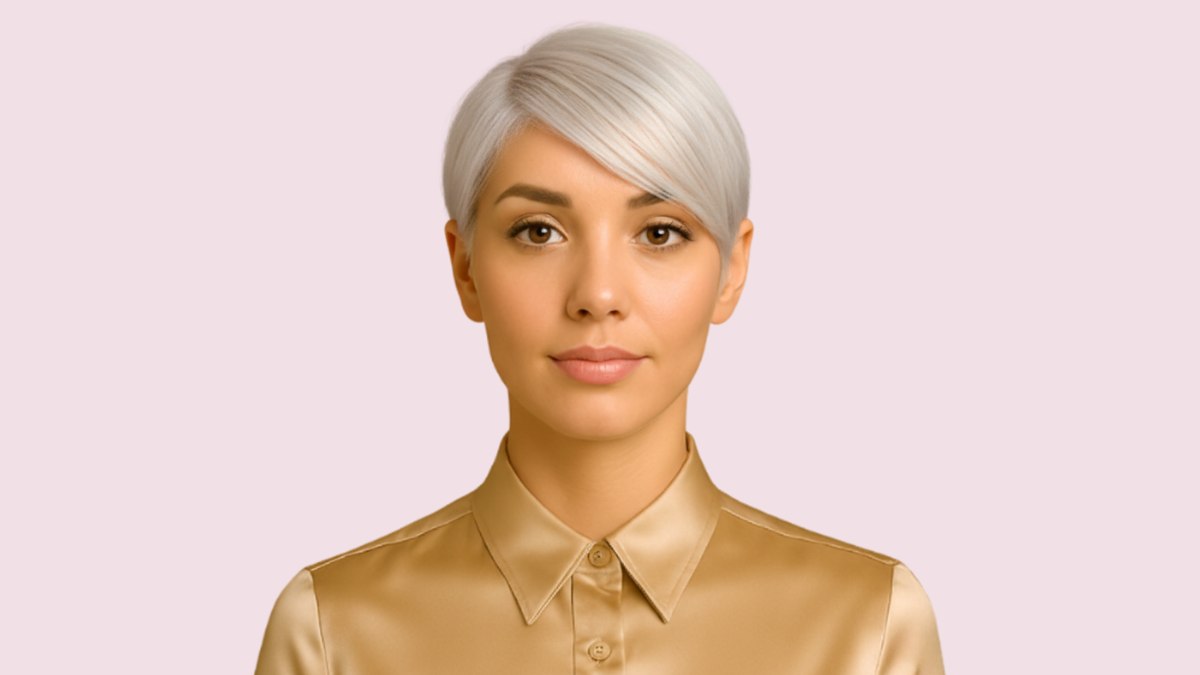 Préparez-vous à éblouir ! Ce pixie platine ultra-chic incarne l’élégance moderne : net, saisissant et inoubliable. Il encadre le visage comme le bijou le plus flatteur.