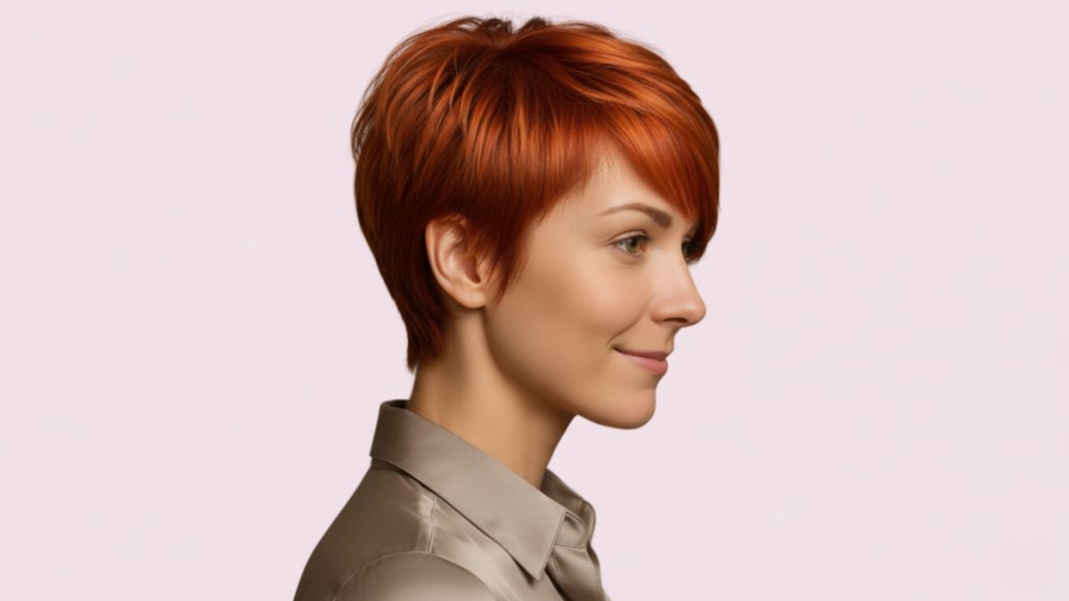 Préparez-vous à surprendre avec cette coupe courte cuivrée d’une précision éblouissante, véritable automne en version capillaire.