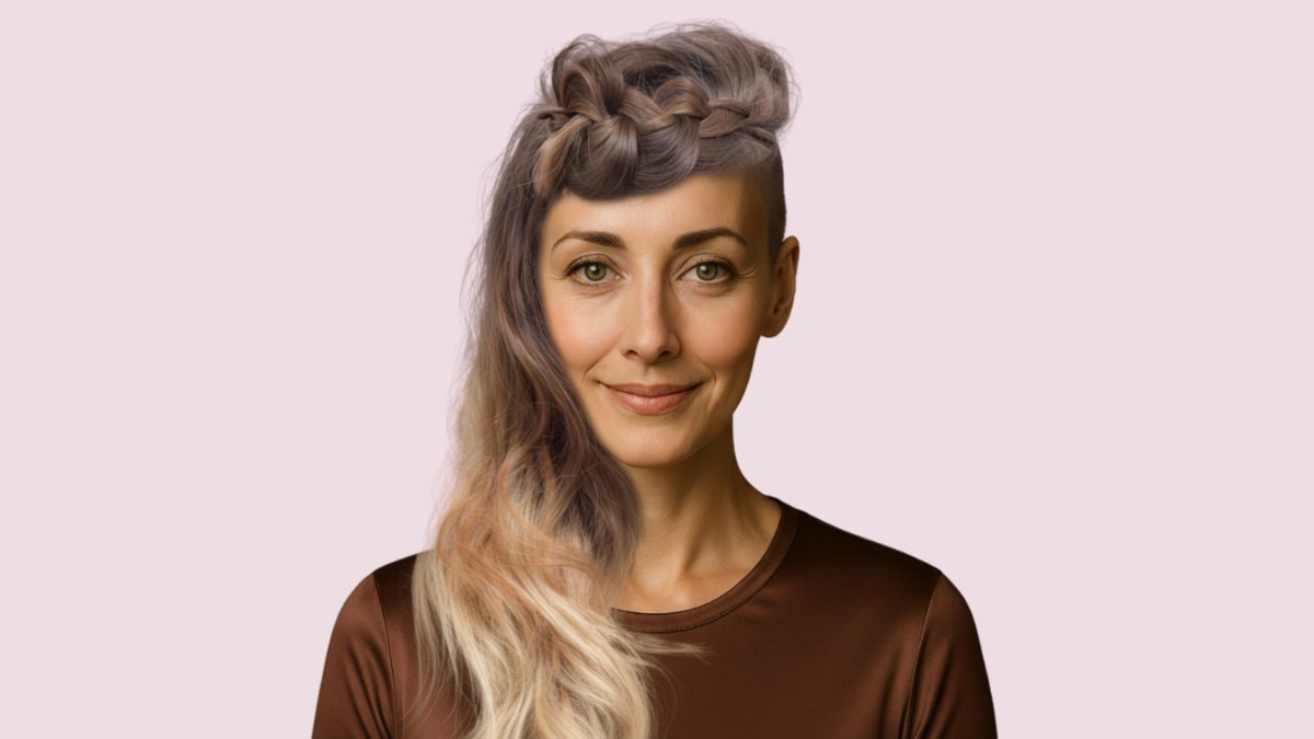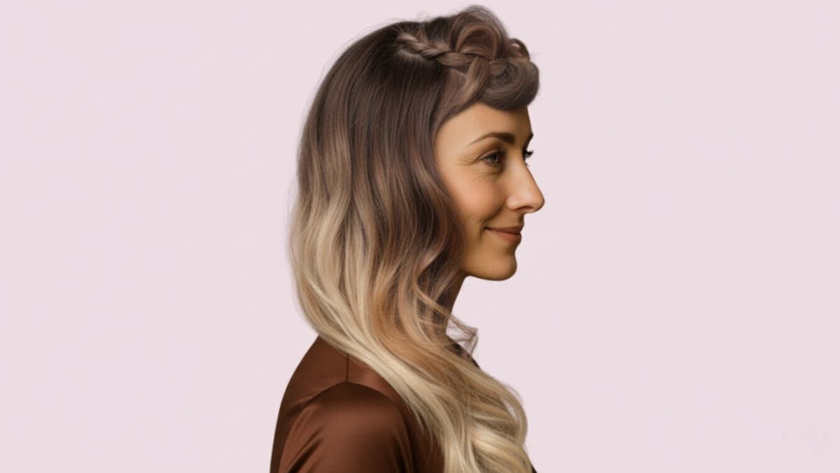 Réaliser ce look, c’est devenir artiste : on sépare l’avant, on brosse, puis on roule soigneusement vers l’arrière en fixant avec des épingles invisibles. Le reste est lissé sur un côté pour un flux asymétrique élégant et théâtral.