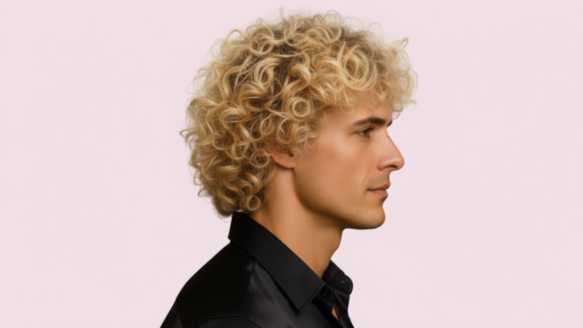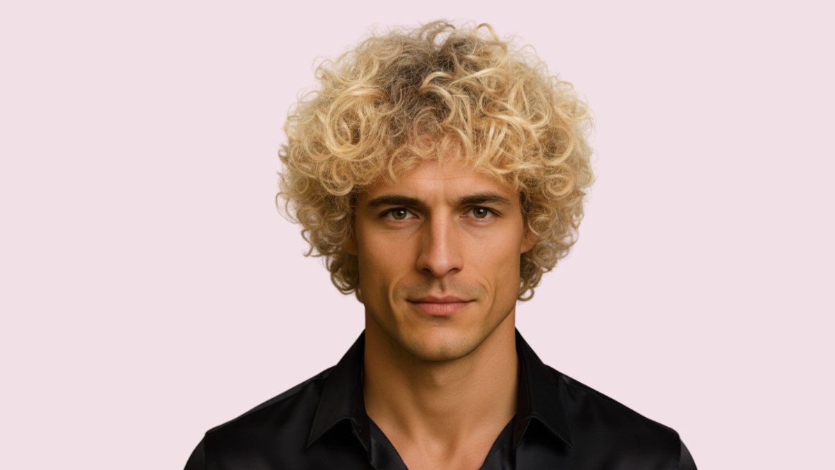 Voici une coiffure masculine qui respire la confiance et le charisme ! Ces boucles dorées créent un effet ensoleillé, comme si vous reveniez d’une plage baignée de lumière. La longueur, un peu plus généreuse que le style précédent, permet de jouer avec ces boucles splendides et d’obtenir un impact visuel saisissant.
