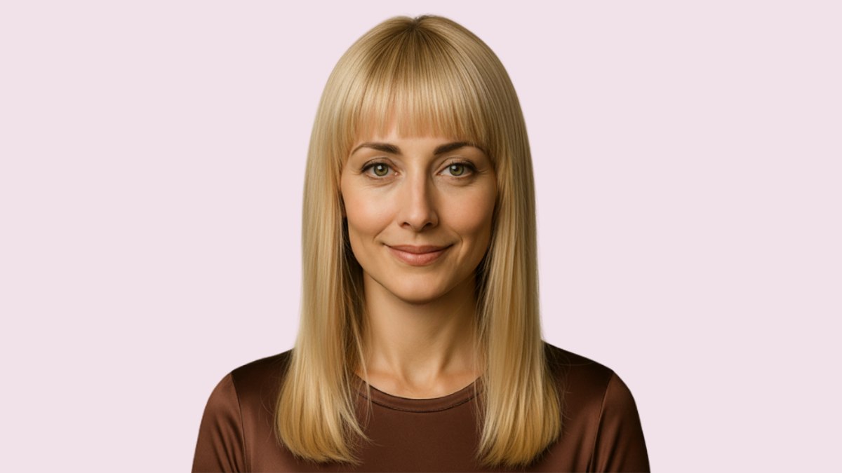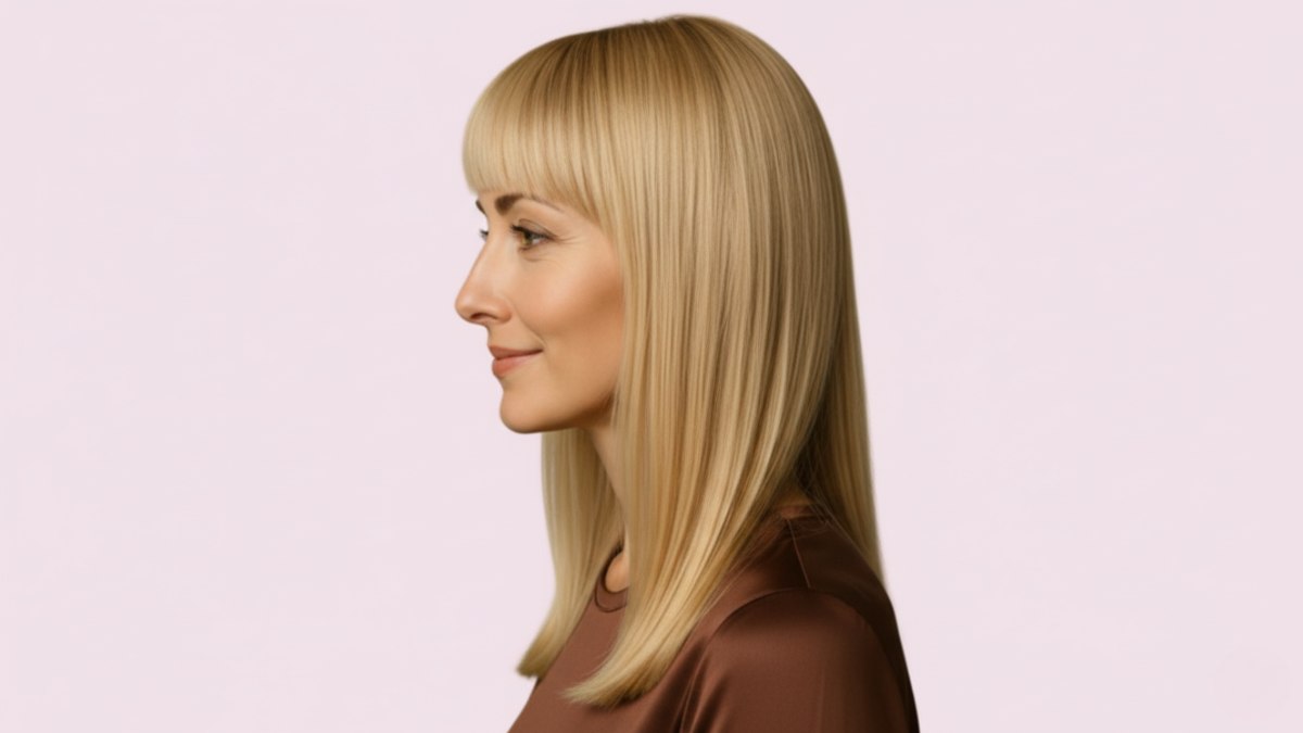 Cette coupe convient particulièrement aux cheveux moyens à épais, dont le poids maintient la ligne droite impeccable. La technique franche donne même l’impression d’une chevelure plus dense.