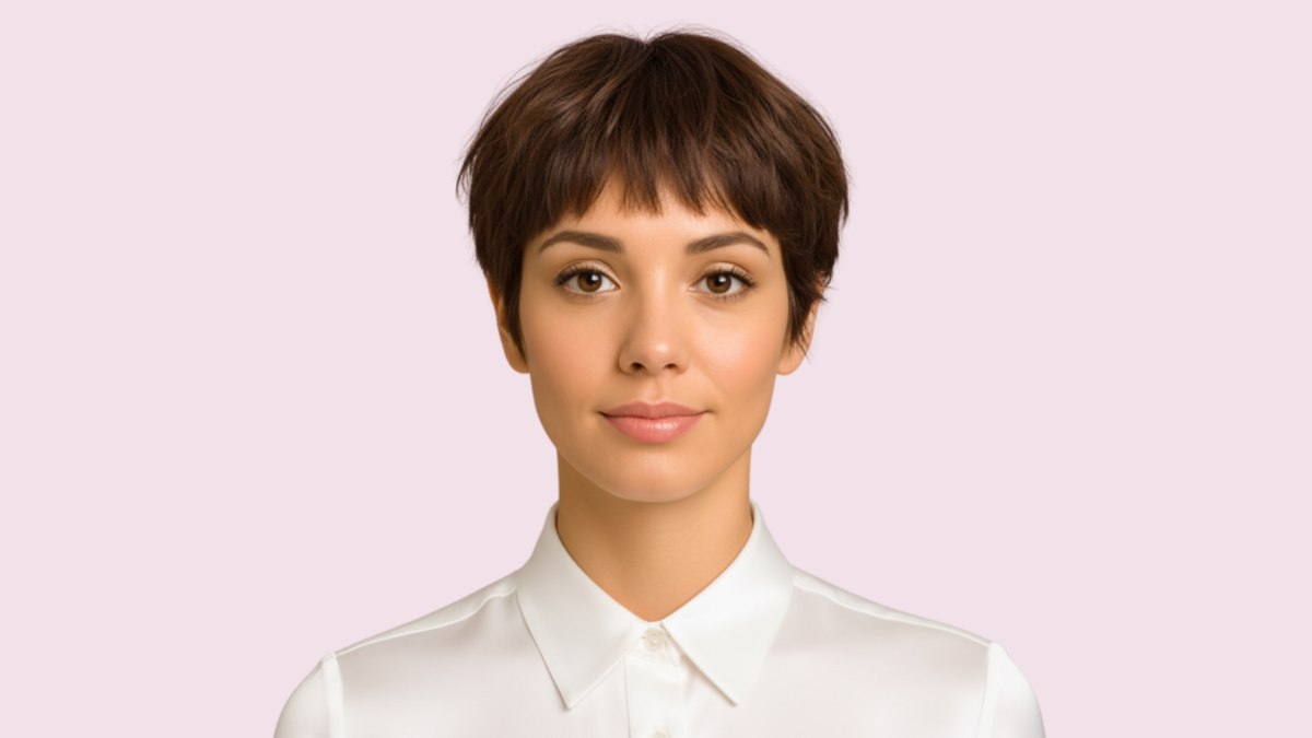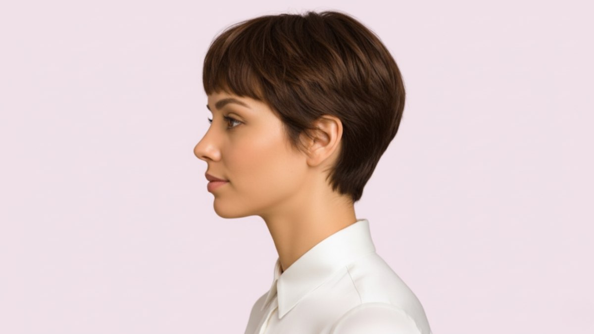 Surprenamment polyvalente, cette coupe courte peut se porter lisse et droite pour un effet dramatique ou légèrement texturée pour une allure plus douce. La couleur brun chocolat profond apporte richesse et éclat, donnant un aspect luxueux et toujours impeccable.