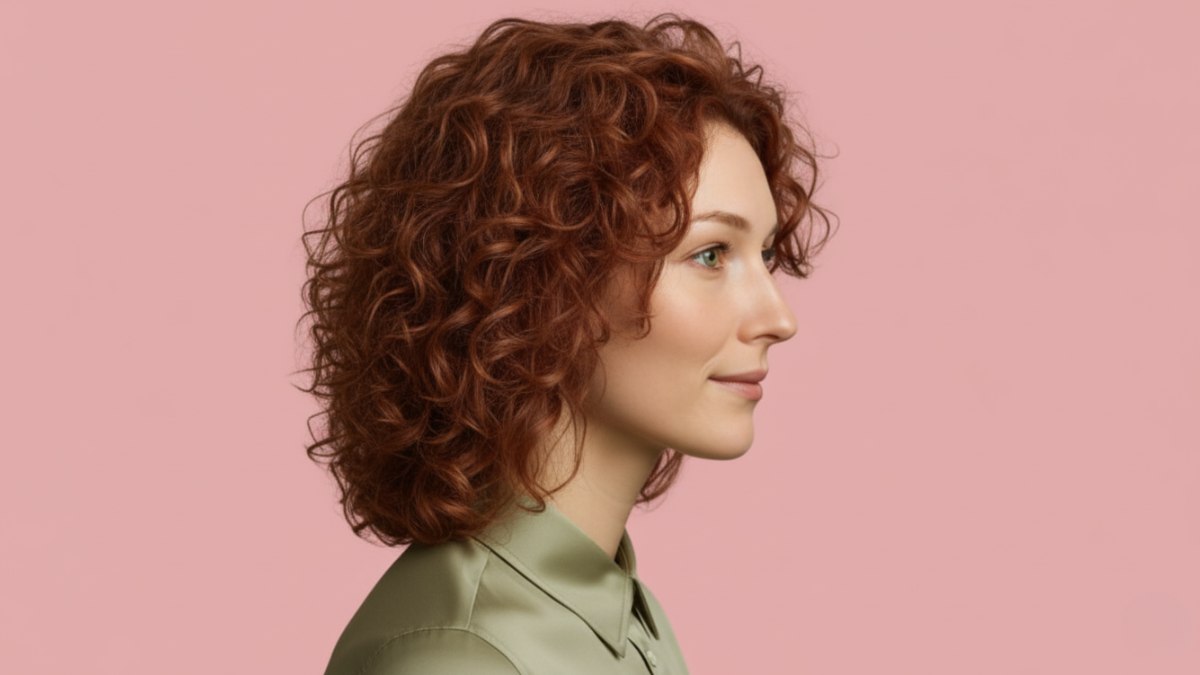 Ces magnifiques boucles en spirales sont de la romance pure ! Rien à voir avec les anglaises d’antan : ce sont des spirales souples et rebondies qui attrapent la lumière. La couleur auburn riche les fait rayonner, encadrant le visage avec féminité.