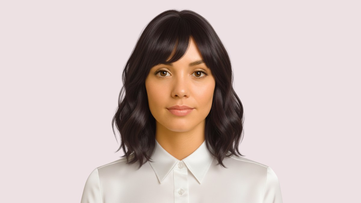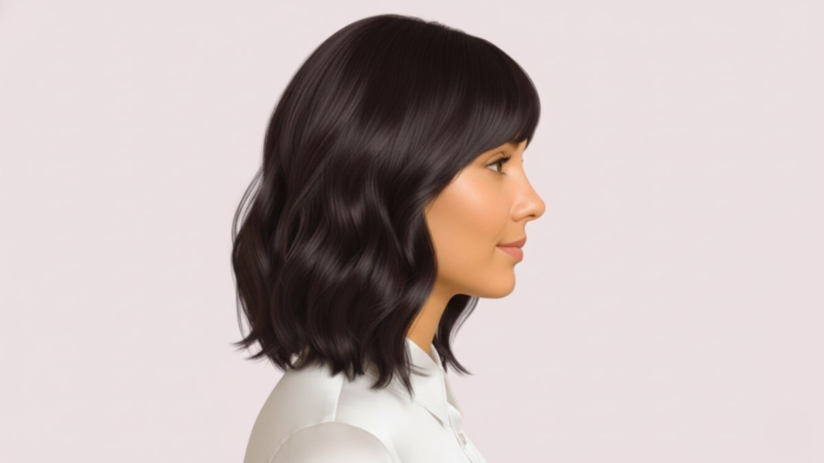 La magie réside dans les détails : les pointes qui effleurent juste les épaules dessinent une ligne horizontale affirmée, apportant structure et raffinement à votre allure. La frange balayée sur le côté n’est pas un simple ajout : elle est soigneusement coupée pour frôler les sourcils, créant un voile doux qui ajoute du mystère et attire le regard vers vos yeux.