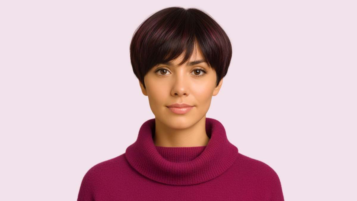La magie vient de la technique de dégradé : la silhouette arrondie suit la courbe naturelle de votre tête, avec une longueur juste suffisante pour glisser derrière les oreilles. La frange, coupée en courbe douce, s’arrête délicatement aux sourcils pour un effet instantanément élégant.