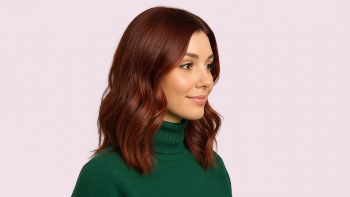 La couleur est la vedette : un auburn riche et vibrant. Chaleureux, audacieux et splendide sur presque toutes les carnations. Ce n’est pas une teinte derrière laquelle on se cache ; elle vous fait relever la tête et illumine votre sourire.