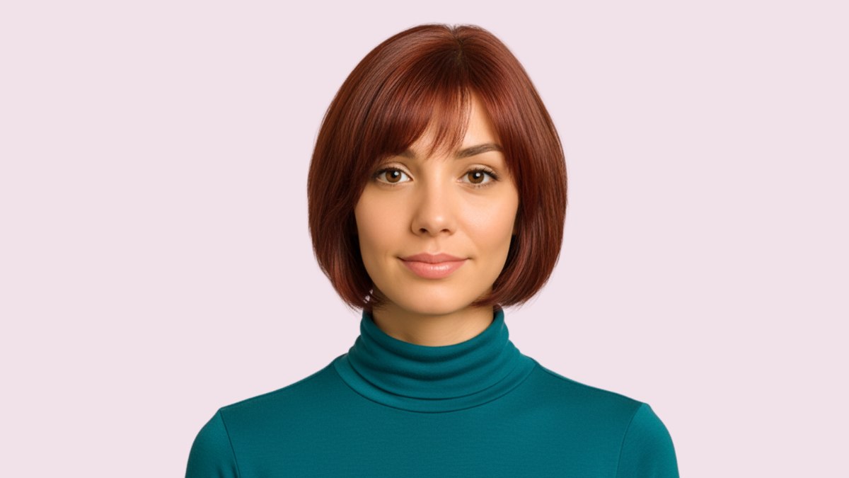 Il y a quelque chose de magique dans l’association d’un carré classique et d’un auburn chaleureux. C’est comme s’envelopper dans des feuilles d’automne : à la fois chaleureux, accueillant et raffiné. La coupe, équilibrée, tombe entre le menton et les épaules, encadrant le visage avec élégance.