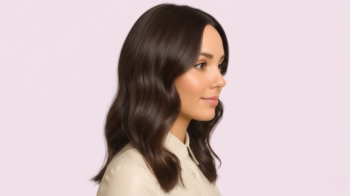 La raie centrale encadre le visage avec symétrie, créant une allure raffinée. La couleur est brun profond avec de subtils reflets chauds qui ajoutent de la dimension et font ressortir les vagues, comme si vos cheveux avaient leur propre personnalité.