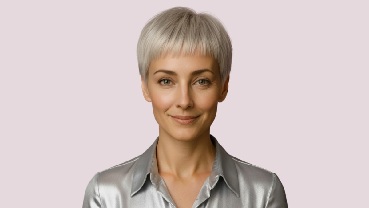 Passons maintenant à la coupe, là où tout devient intéressant. Cette coupe à la garçonne mise sur la précision et sur cette fraîcheur du "tout juste coupé". La frange tombe droit sur le front dans une ligne nette et affirmée. Elle est coupée bien au-dessus des sourcils, ce qui ouvre le visage et attire l’attention sur les yeux. Avec une frange aussi marquée, votre regard devient le centre de votre style.