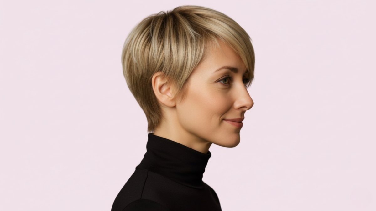 Ce pixie est idéal pour la femme qui veut une coupe à faible entretien tout en restant tendance. La routine du matin est d’une simplicité incroyable : un peu de produit coiffant, quelques gestes des doigts, et c’est parfait. Contrairement aux cheveux longs, cette coupe a presque toujours belle allure sans effort.
