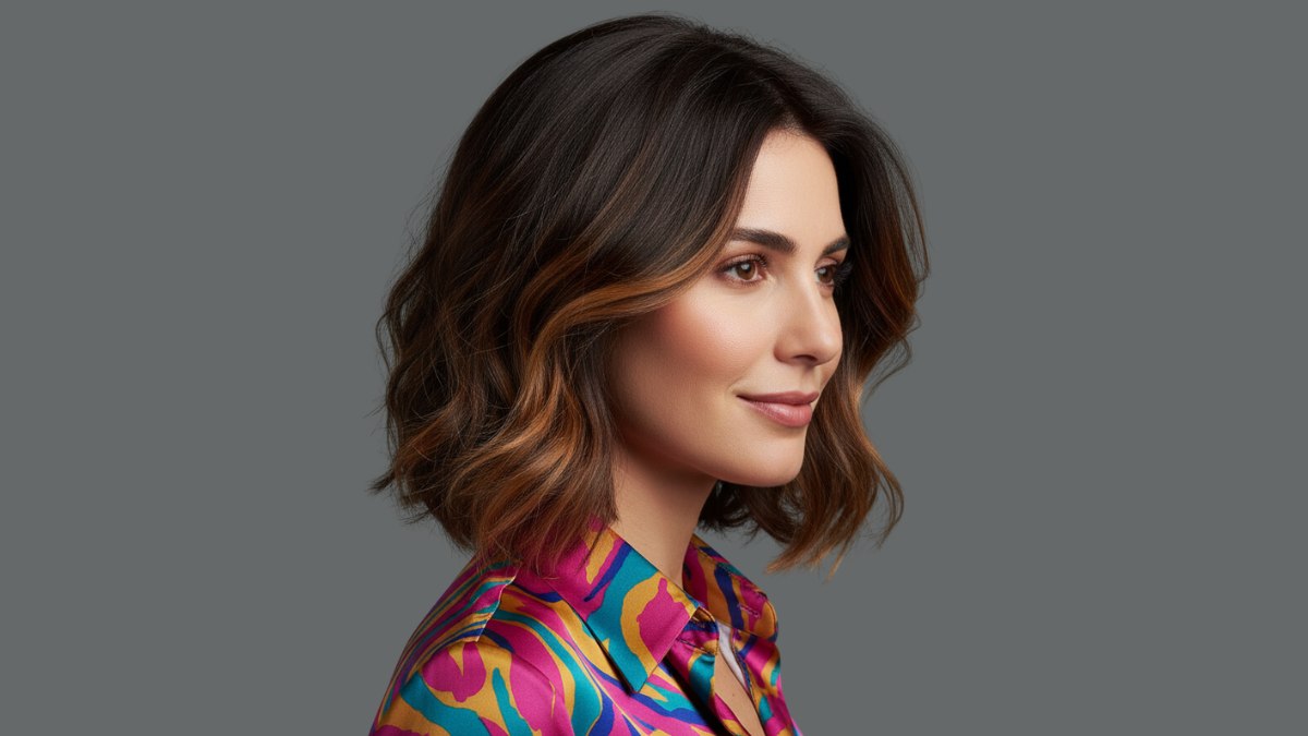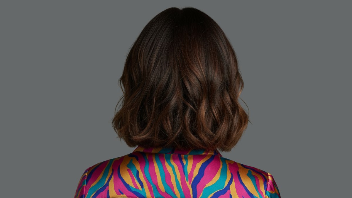 La raie centrale apporte de la symétrie et une touche contemporaine. Les ondulations commencent à mi-longueur et se prolongent jusqu’aux pointes, créant un mouvement qui encadre le visage. Cette longueur est très polyvalente et convient aussi bien à un environnement professionnel qu’à des occasions en soirée.