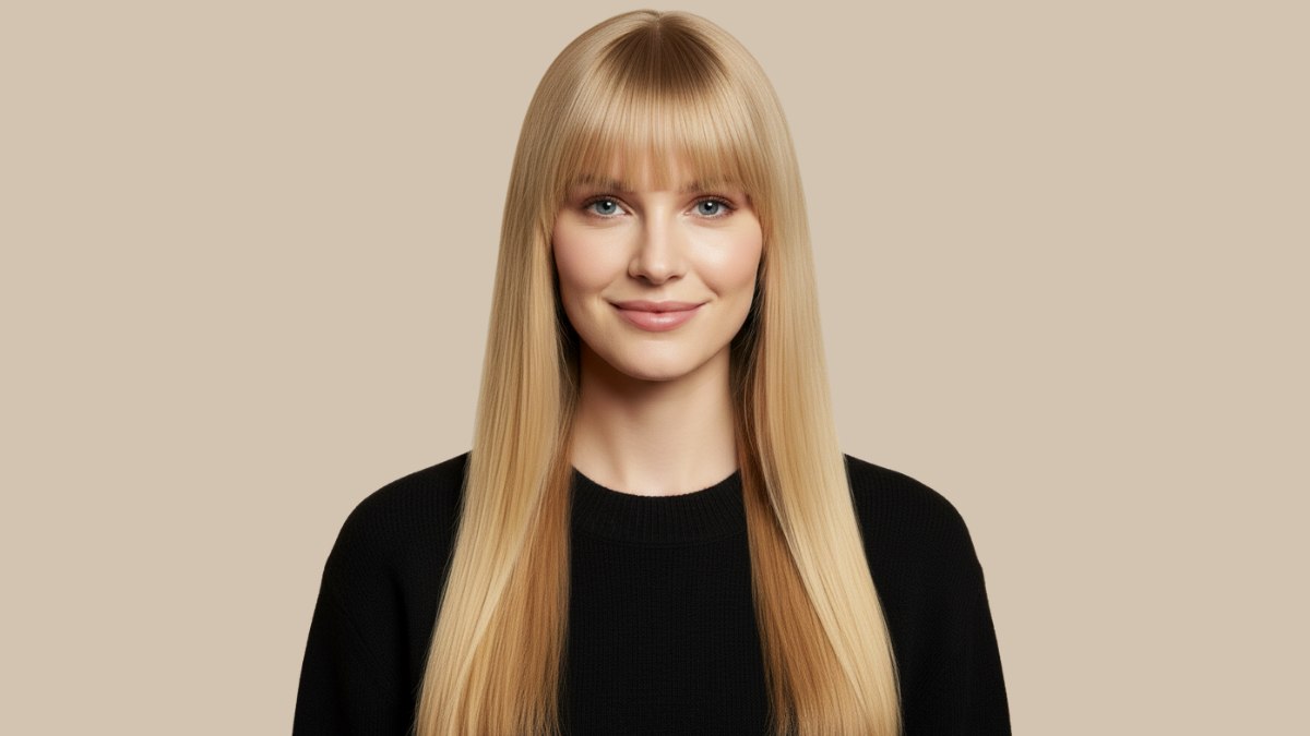 Cheveux longs blonds avec frange
