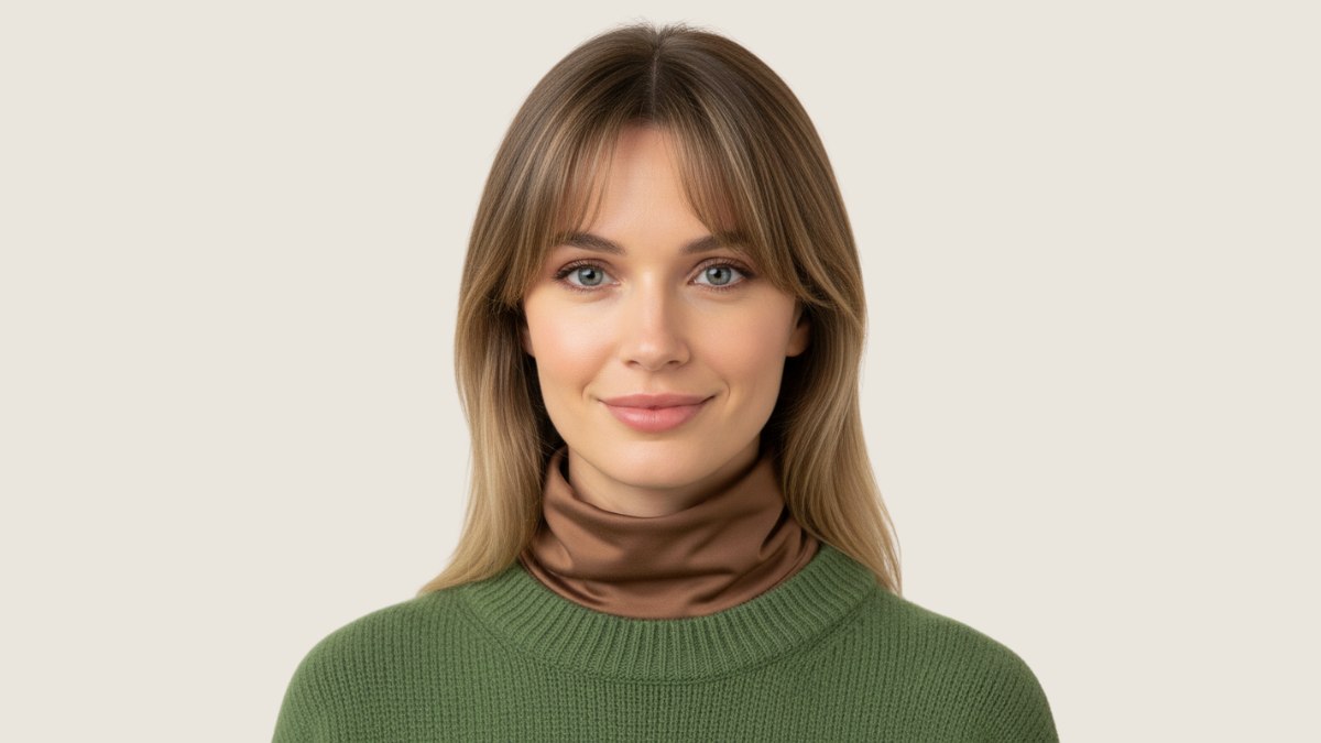 Le pull en maille vert olive s’accorde parfaitement avec cette coiffure. Sa teinte terreuse et feutrée complète les nuances blondes chaudes, créant une palette harmonieuse et naturelle. La maille texturée du pull ajoute un poids visuel au bas de la silhouette, équilibrant joliment la légèreté des cheveux au-dessus. Pendant ce temps, le col roulé en soie marron qui dépasse ajoute une touche luxueuse rappelant la richesse des racines plus sombres.