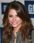Maria Menounos, born on June 8th, 1978, is an American actress, television presenter, and journalist known for her appearances on Access Hollywood and The Today Show.As a spokesperson for Pantene shampoos, Maria always presents herself with impeccably pampered tresses that boast full shimmer and volume. After experimenting with chin-length bob haircuts, Maria opted to let her hair grow and unfold to its fullest potential. The result is a luxurious chocolate-colored mane with caramel highlights cascading around her face and down her shoulders in long layers, adorned with large waves and unbelievable shine.