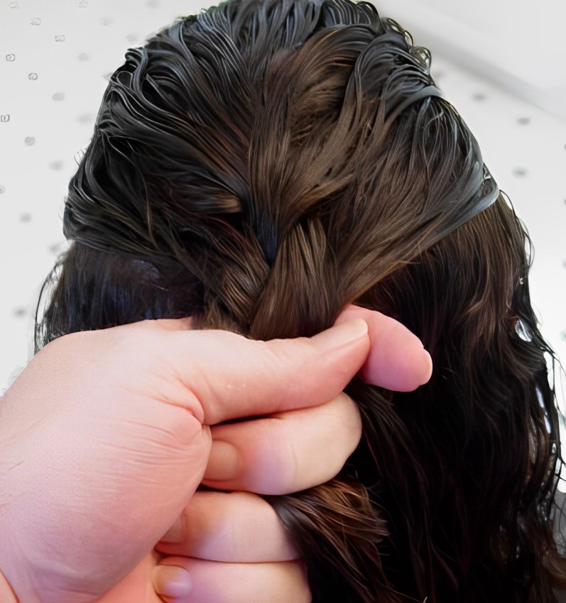 Paso uno: Comienza con un pelo limpio. El cabello puede estar recientemente lavado, acondicionado y secado con toalla o puede estar completamente seco, como tú prefieras. (Yo prefiero trenzar pelo húmedo.) Usa un spray que desenvuelva el cabello o acondicionador de los que se dejan puestos, luego peina el pelo hasta que todos los nudos se hayan deshecho.