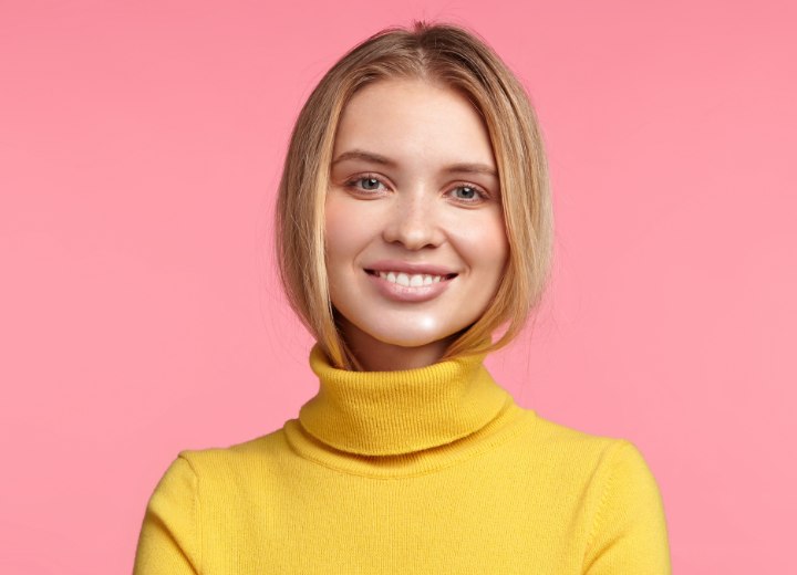 De plus, les cheveux dans le col roulé sont une manière amusante de simuler une coupe au carré. Vos cheveux ont exactement l'air d'une coupe au carré, mais sans avoir à vous engager à les couper plus courts. Avec les cheveux dans le col roulé, vous pouvez induire les gens en erreur en faisant croire que vos cheveux sont plus courts qu'ils ne le sont vraiment. Vous pouvez profiter des avantages et de l'attrait d'un carré sans couper vos cheveux.