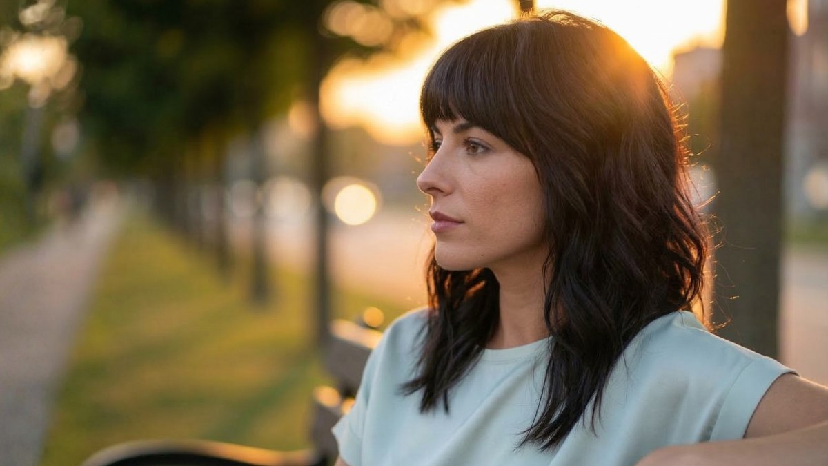 La palette chromatique est une véritable étude sur la profondeur : ce brun, qui semble presque ébène au premier regard, dévoile une dimension fascinante. C'est une nuance sérieuse, lisse, dramatique. Sous les caresses de l'heure dorée, des sous-tons chocolat émergent soudainement, réchauffant la chevelure d'une brillance éclatante de santé. Nul besoin de balayage ici ; la pureté de la coupe et l'alchimie de la lumière suffisent à créer le relief.