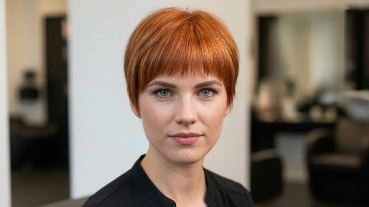 Les sous-tons cuivrés apportent une richesse qui sublime le teint, particulièrement pour les carnations aux reflets dorés. La nuque, exposée avec netteté, renforce cette impression de fraîcheur globale.