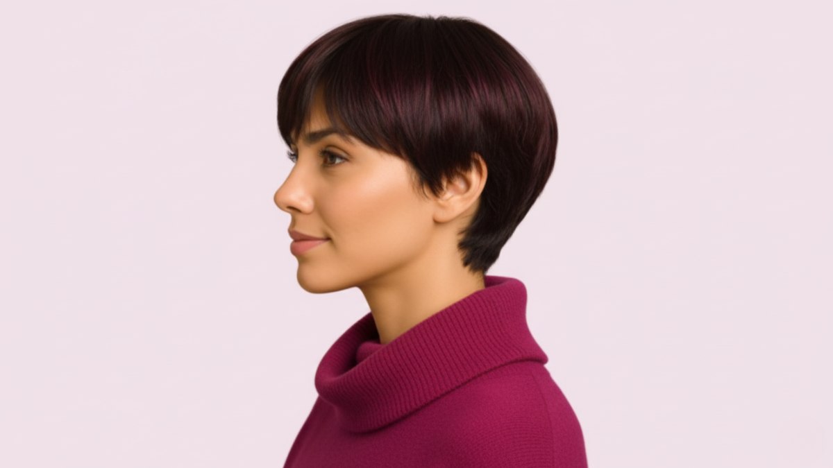 La magie vient de la technique de dégradé : la silhouette arrondie suit la courbe naturelle de votre tête, avec une longueur juste suffisante pour glisser derrière les oreilles. La frange, coupée en courbe douce, s’arrête délicatement aux sourcils pour un effet instantanément élégant.