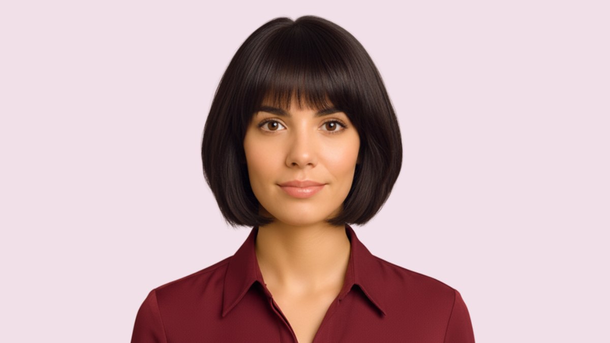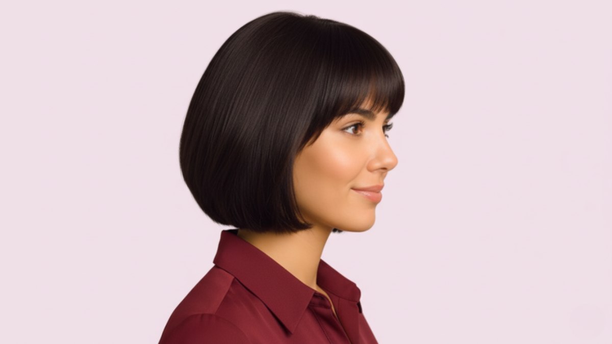 La frange est légère et texturée, pas franche, pour un style décontracté. Elle se fond dans l’ensemble tout en encadrant le visage. Parfait pour celles qui veulent être élégantes sans passer des heures à se coiffer.