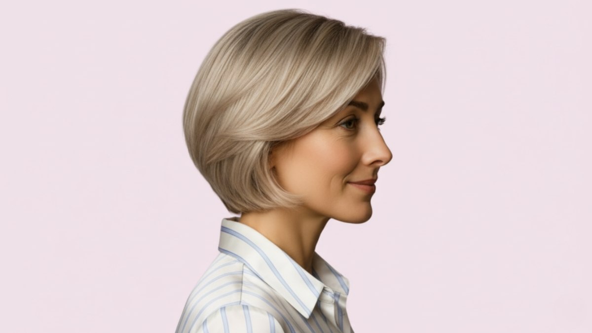 La texture est clé : lissage parfait avec juste assez de corps pour éviter l’aplatissement. Un brushing à la brosse ronde crée la courbe, un lisseur dompte les mèches rebelles, et un produit de finition léger donne une brillance de salon.
