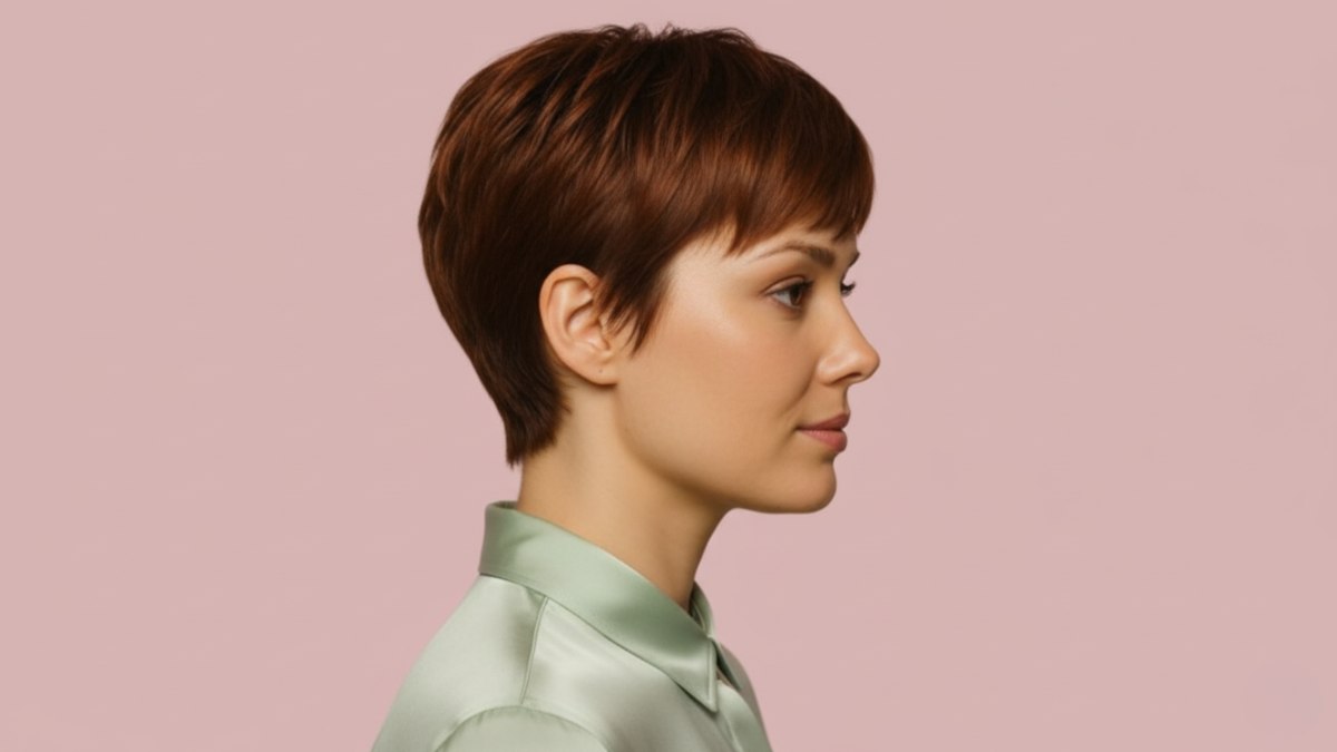 Malgré sa courte longueur, cette coupe pixie offre une grande polyvalence. Vous souhaitez un look lisse et soigné ? Un peu de produit coiffant peut lisser le dessus et accentuer les lignes nettes de la coupe. Pour un style plus décontracté et audacieux, vous pouvez ébouriffer les couches avec une légère pommade ou un spray texturisant pour un effet naturel et casual. Quant à la frange balayée, elle est aussi flexible : vous pouvez la coiffer en arrière pour un look raffiné et sophistiqué ou la relever pour une finition audacieuse, digne des podiums.