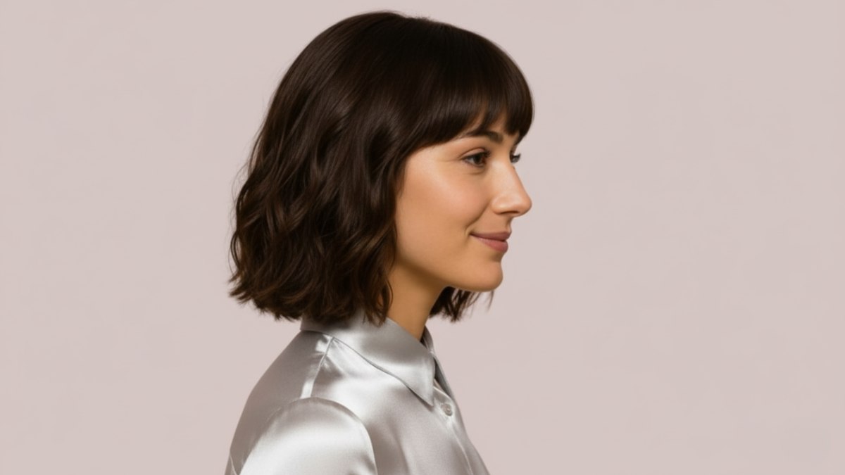 L’un des plus grands atouts de cette coupe est sa polyvalence. Pour un look plus lisse, vous pouvez facilement lisser vos cheveux. La frange peut être coiffée de multiples façons—balayée sur le côté pour une allure douce ou épinglée pour un style différent. La longueur permet aussi des coiffures variées, comme une queue de cheval ou un chignon élégant pour des occasions plus formelles.