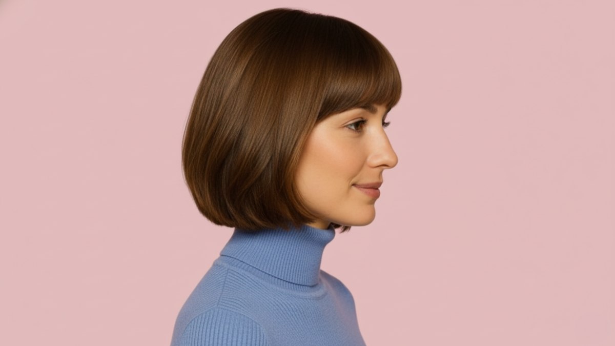 Ce carré à la longueur du menton, avec des couches douces et une frange pleine et droite, est une coiffure intemporelle qui semble fraîche et élégante. Ajoutez à cela la belle couleur, et vous obtenez un look à la fois à la mode et polyvalent. C'est le genre de coupe qui convient aux femmes souhaitant un style confortable avec une touche de personnalité.