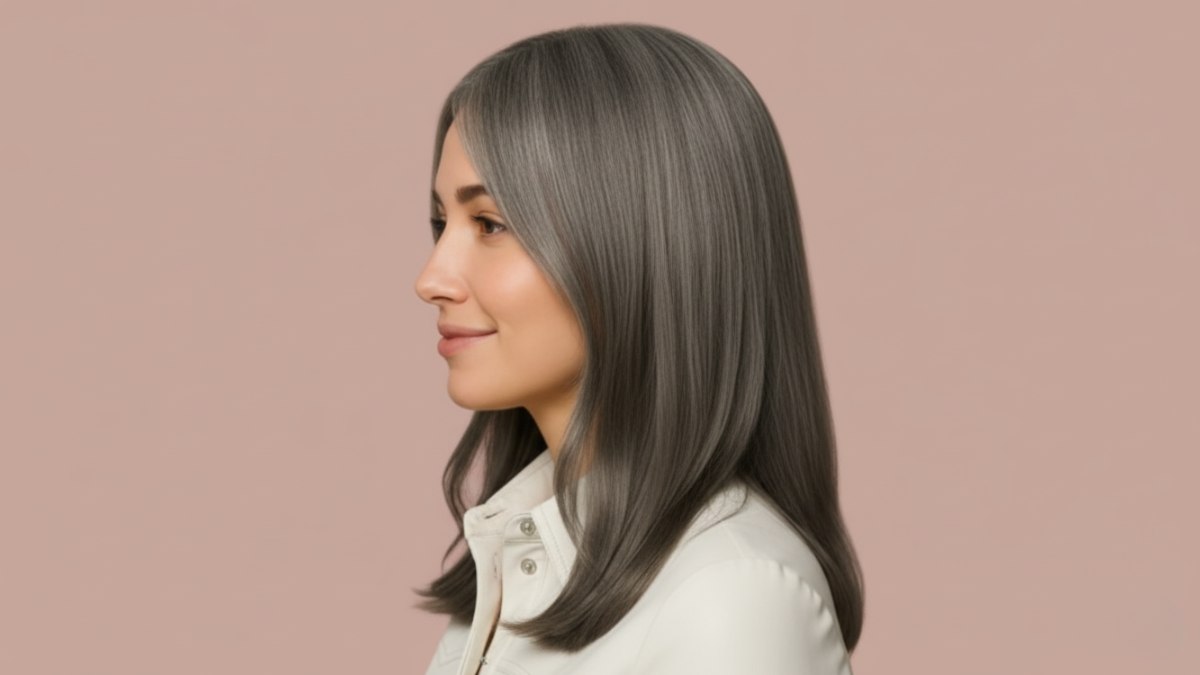 En parlant de texture, le coiffage de ce look trouve le juste milieu entre poli et naturel. Les cheveux ne sont ni raides comme des baguettes, ni trop bouclés. Au lieu de cela, ils affichent une douce ondulation qui ajoute juste ce qu’il faut de mouvement. Cette vague commence autour des mi-longueurs et se prolonge jusqu'aux pointes, conférant aux cheveux une touche douce et romantique. C’est le contraste parfait avec le caractère audacieux de la couleur argentée, créant un look à la fois chic et portable.