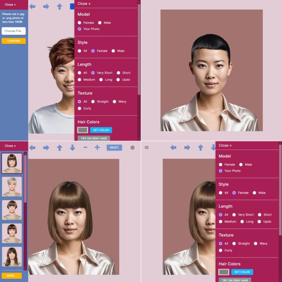 You can upload a photo of yourself or use a model’s photo to try on hairstyles and hair colors.