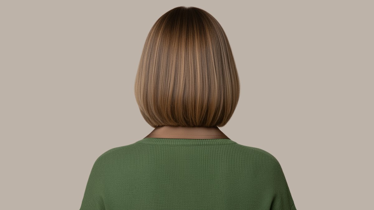 This neck-length bob is all about volume, movement, and blended color. The cut falls at a flattering length, with subtle internal layering that creates lift and body without sacrificing the overall weight and fullness of the medium length style.