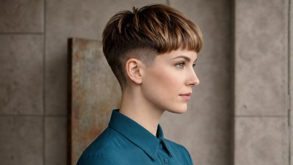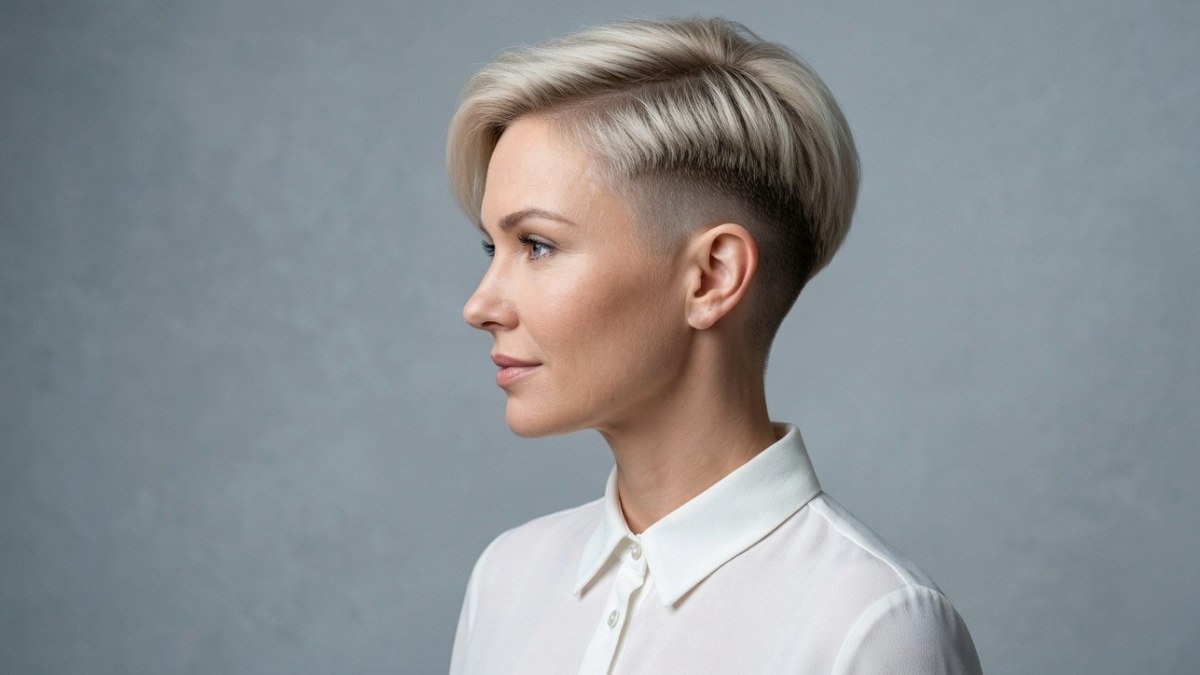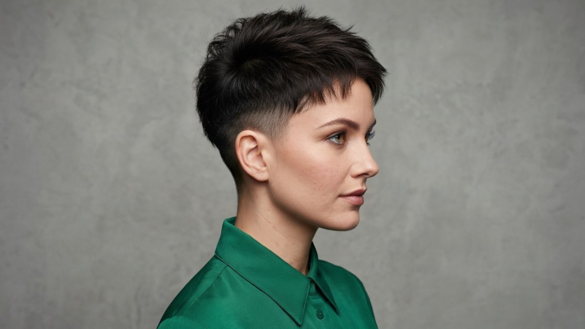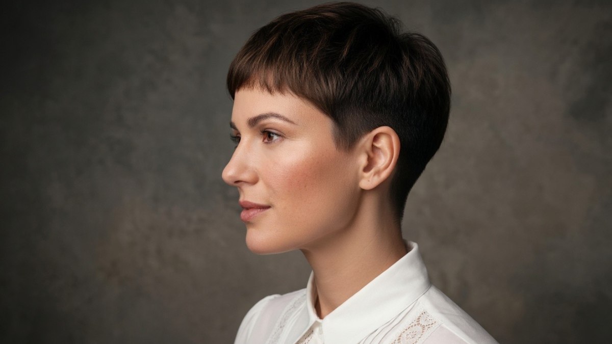 This is a true clipper cut. The back is faded tightly, meaning you will feel the cool air on your neck; a sensation that many women find incredibly liberating. The top is cut into layers that can be pushed forward or spiked up for a bit of attitude. Because the sides are so short, your cheekbones and jawline will become the stars of the show.