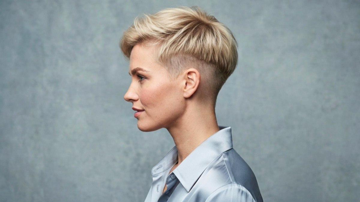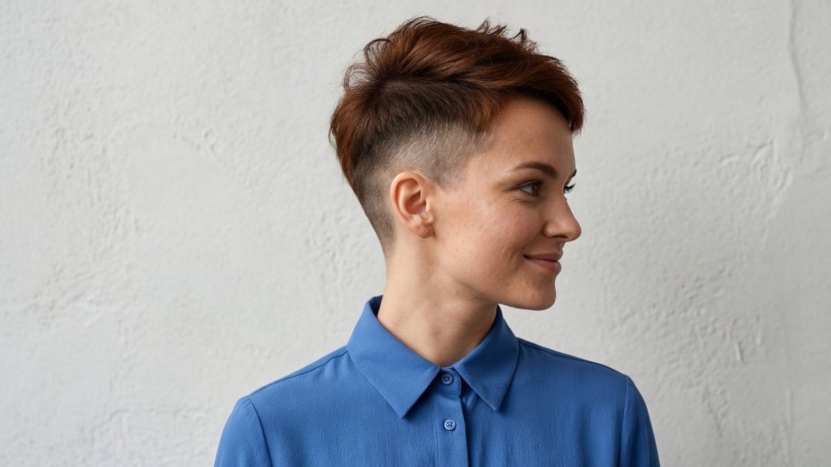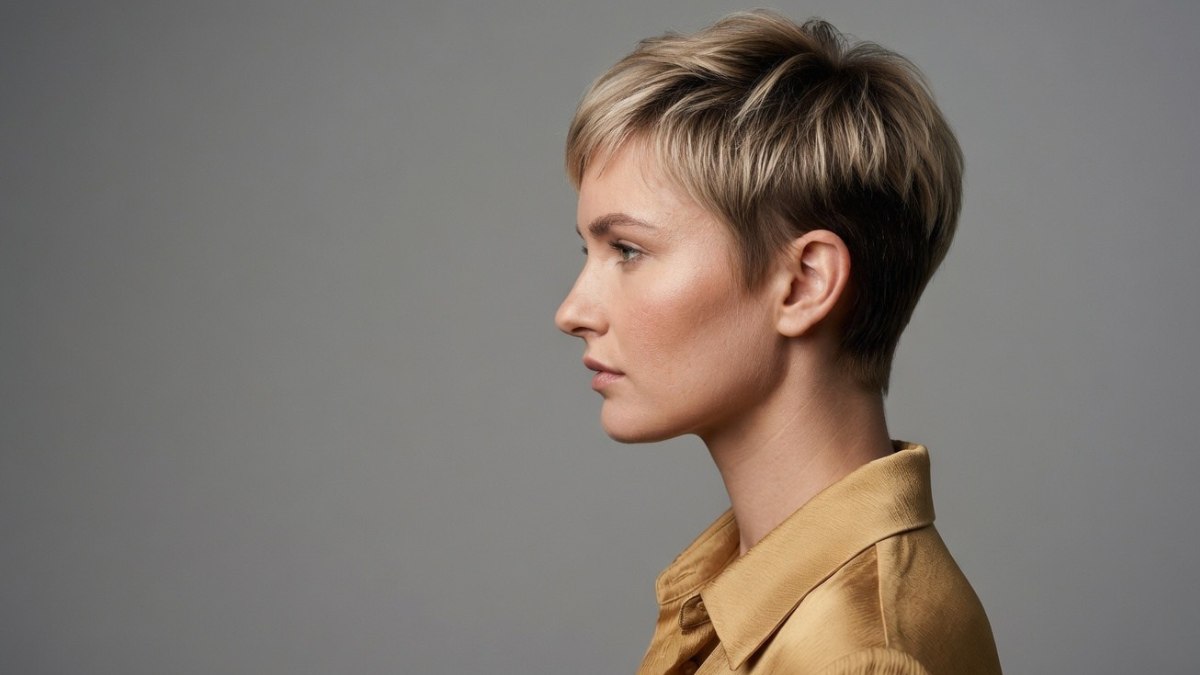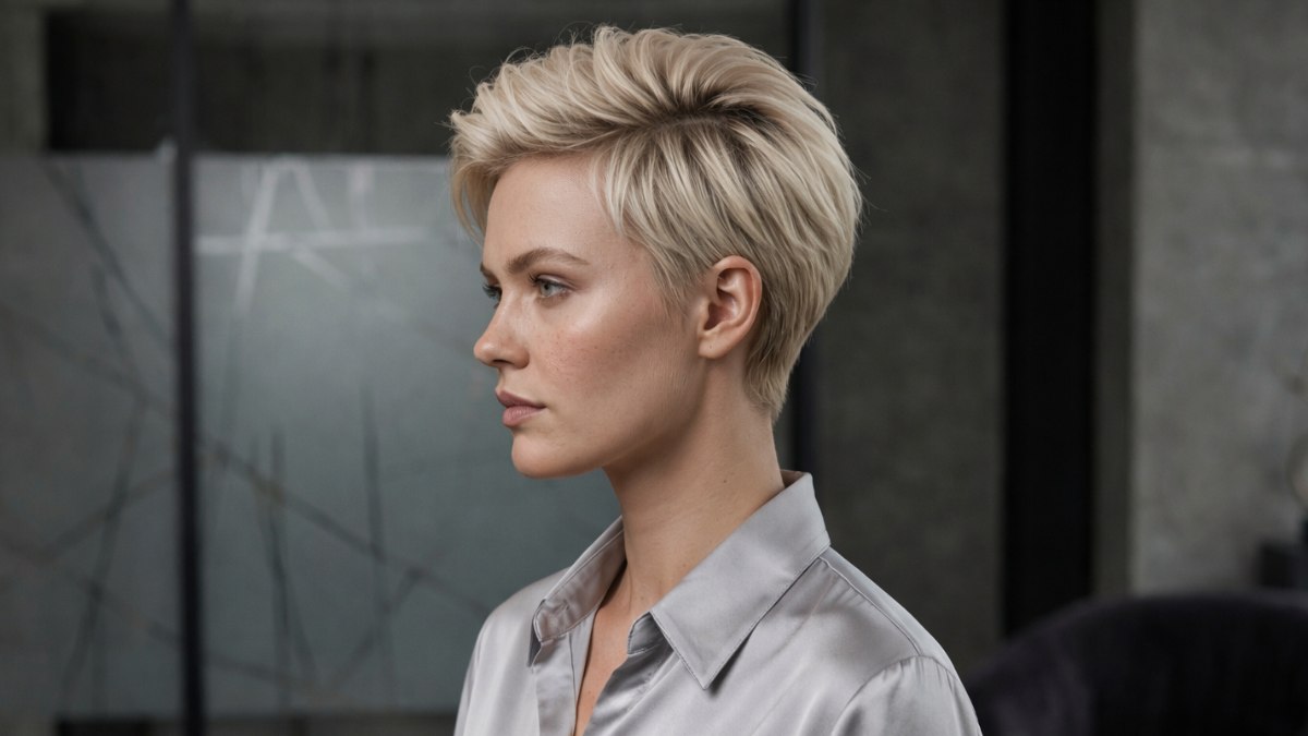 This is a true clipper cut. The back is faded tightly, meaning you will feel the cool air on your neck; a sensation that many women find incredibly liberating. The top is cut into layers that can be pushed forward or spiked up for a bit of attitude. Because the sides are so short, your cheekbones and jawline will become the stars of the show.