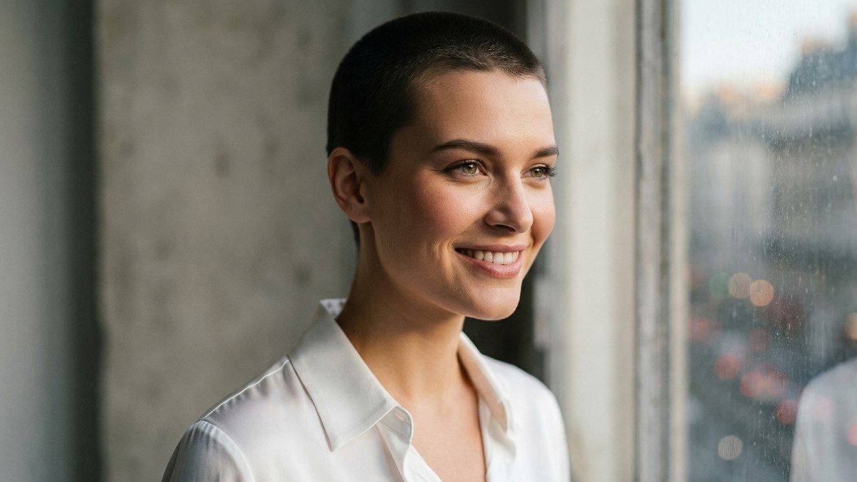 A buzz cut like this highlights the shape of your head and the sparkle in your eyes. Beyond the look, there is the lifestyle change: no more blow-drying, no more styling products, and no more bad hair days. You wake up every morning looking exactly like this. If you have ever wondered what it feels like to be truly free, this is the cut for you.