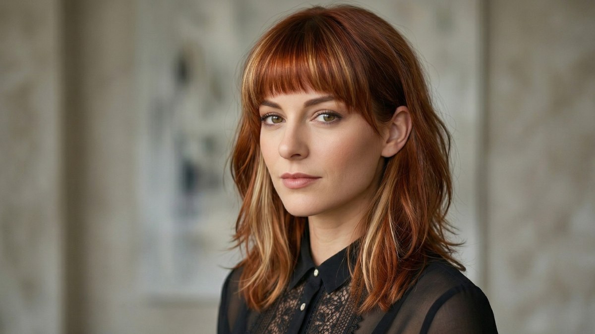 Not every style is meant to blend in, and this one was created to stand out. Bold, textured, and full of attitude, this copper-red shag with short bangs is the kind of haircut that turns heads and starts conversations. It's for the woman who knows exactly who she is, and isn't afraid to show it.