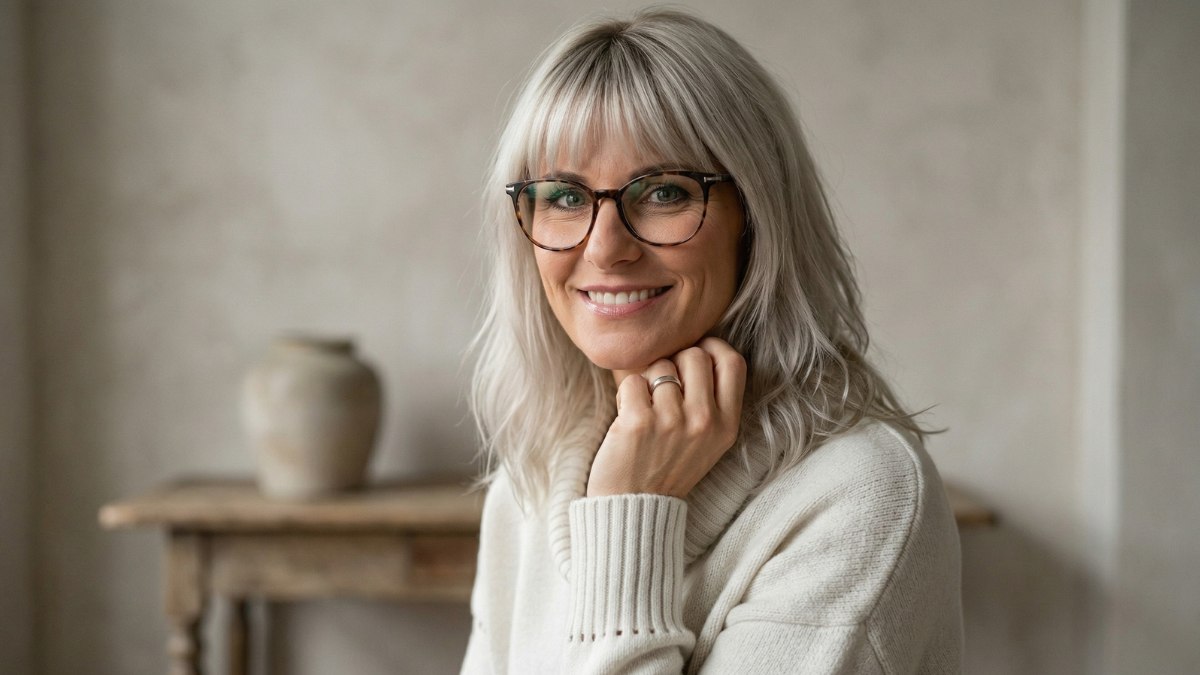 Radiant, warm, and completely at ease; this look is proof that silver hair is not something to hide. The hair is a luminous platinum-silver, soft and with a beautiful natural movement that falls loosely past the shoulders. It has been lightly layered to give it body, and the result is a style that feels both relaxed and sophisticated.
