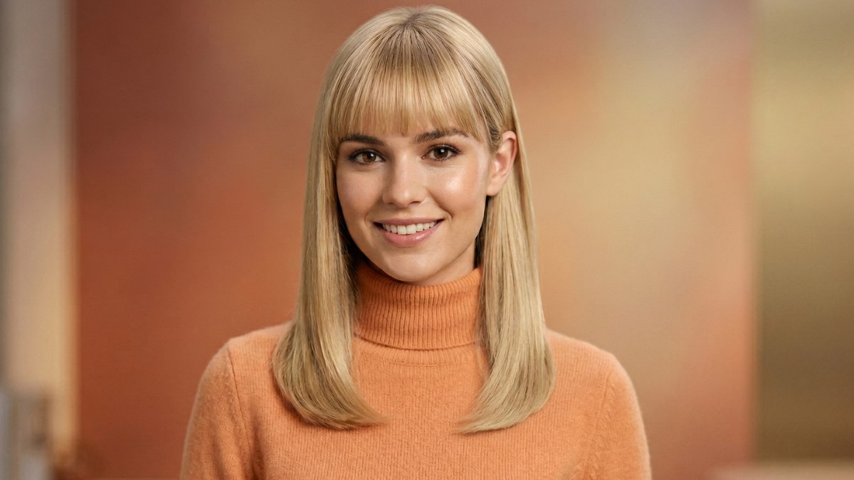 The real highlight of this style is the fringe. It is thick, cut straight across, and brings a modern, trendy energy to a classic look. The fringe frames the face beautifully and draws all the attention to the eyes.