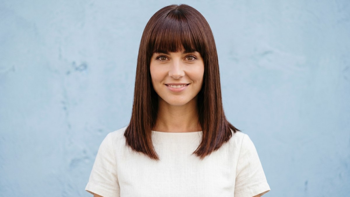 From a practical standpoint, this is a style that does require a bit of effort to maintain. Straight, smooth hair like this benefits from a good heat protectant and a flat iron or blow-dry brush to keep the sleekness intact. The bangs will need regular trims to stay at the right length and maintain that perfect straight line.