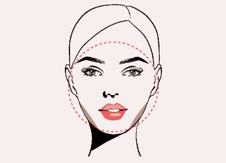 La parte più larga di questo tipo di viso si trova all'altezza degli zigomi e degli orecchi ed è da evitare qualsiasi accumulo di volume o peso su questa linea, cosa che renderebbe il viso ancora più largo.
