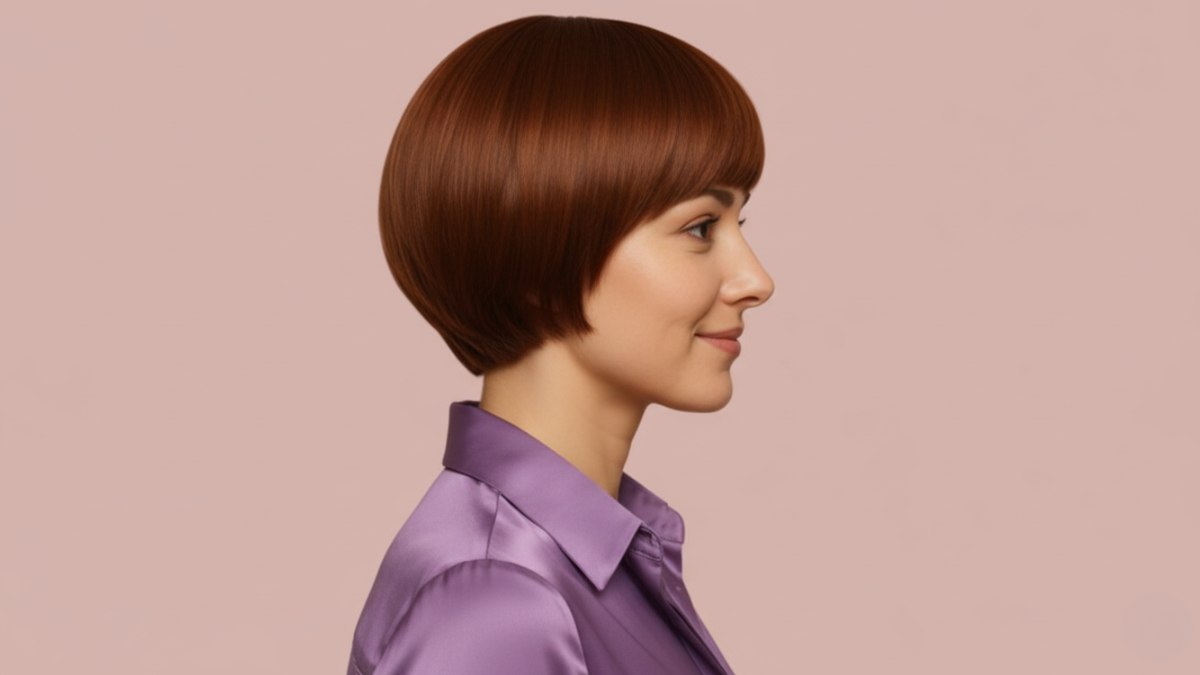 Imagine stepping into the room with a hairstyle that turns heads and sparks conversations. This striking short hairstyle, often called a micro bob, offers a contemporary twist on the classic bob, making it a bold and sophisticated choice for anyone looking to make a statement. With its sleek, geometric cut beautifully complemented by a rich chestnut brown hue, this look enhances fair skin tones and harmoniously blends retro charm with a modern edge.
